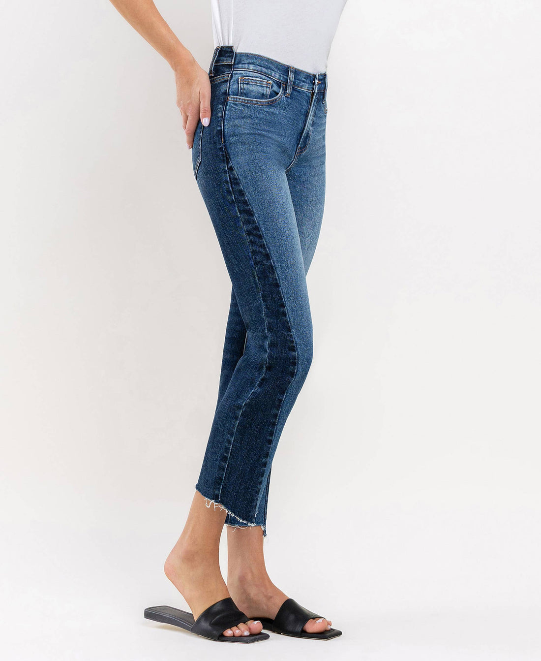 Vervet's high-rise straight jean combines contemporary color blocking with timeless silhouette appeal. The elevated waistband...