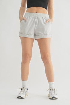 Pale Grey High Waisted Cuffed Athleisure Shorts