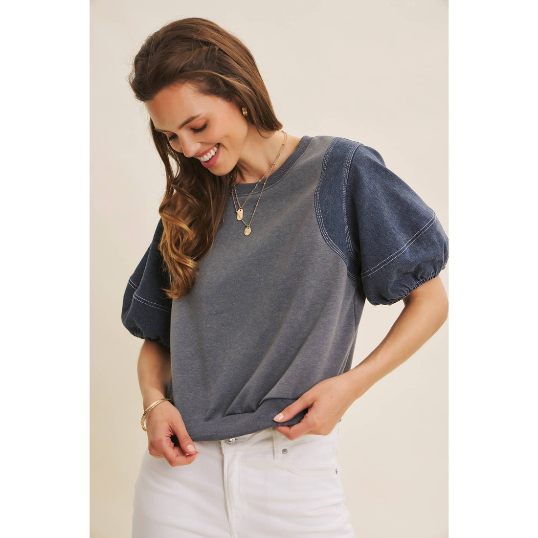Mineral Washed Denim Mix Top