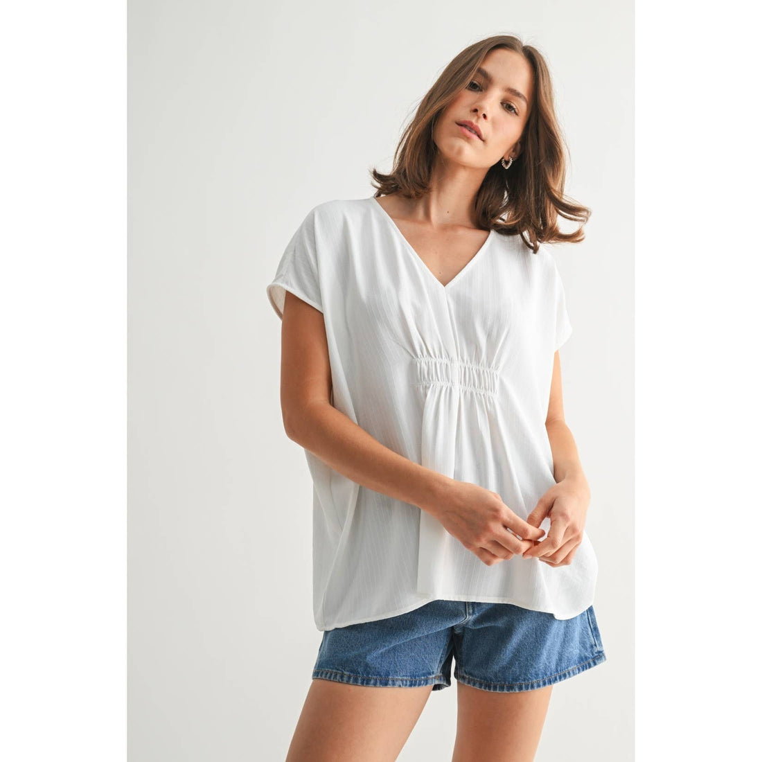 Striped Texture V Neck Woven Top