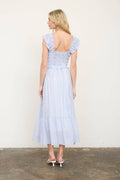 Blue - Stripe Smoked Ruffle Trim Midi Dress