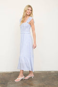Elevate your wardrobe with this stunning Blue Stripe Smoked Ruffle Trim Midi Dress. The classic blue striping pairs beautifully with delicate ruffle detailing along the hem, creating a feminine silhouette that flatters every figure. The smocked bodice provides comfortable support and a polished fit, while the midi length offers versatility for both casual outings and dressed-up occasions. Perfect for spring and summer styling, this bestselling piece transitions seamlessly from day to night. A timeless addition to any closet that combines style, comfort, and effortless elegance.