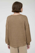 Brown Marled Long Sleeve Ribbed Knit Top