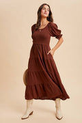 Chestnut Brown - Smocked Tiered Maxi Dress