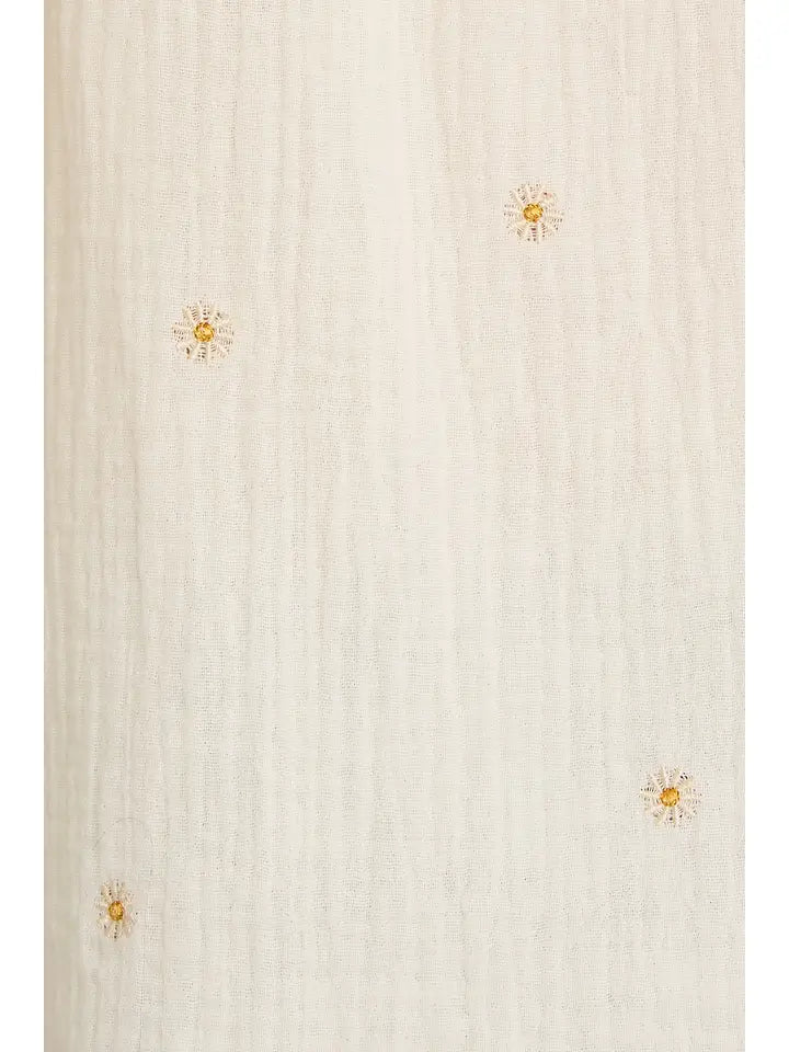 This cream ivory floral round neck top is a timeless piece that adds an elegant touch to any outfit. The 3/4" sleeves and tie detail create a flattering silhouette, while the soft fabric ensures comfort. A must-have addition to any wardrobe, this top is perfect for any occasion.