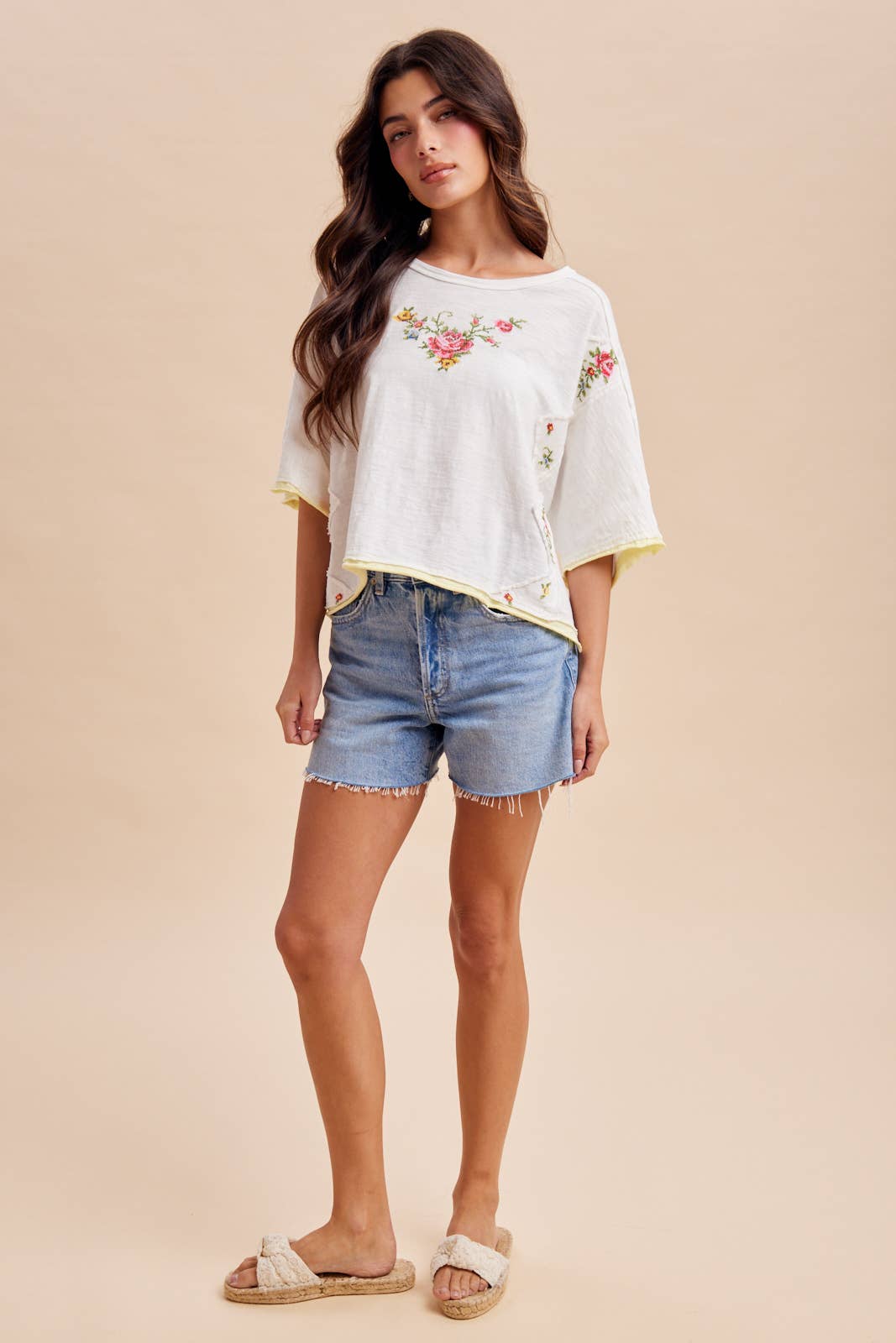 Cross Stitched Floral Embroidered Top