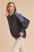 Felicity Top conveys a laid-back vibe and shows a stylish paneled design. She cuts to an oversized silhouette, contrast shoulder, and raw detailing throughout.