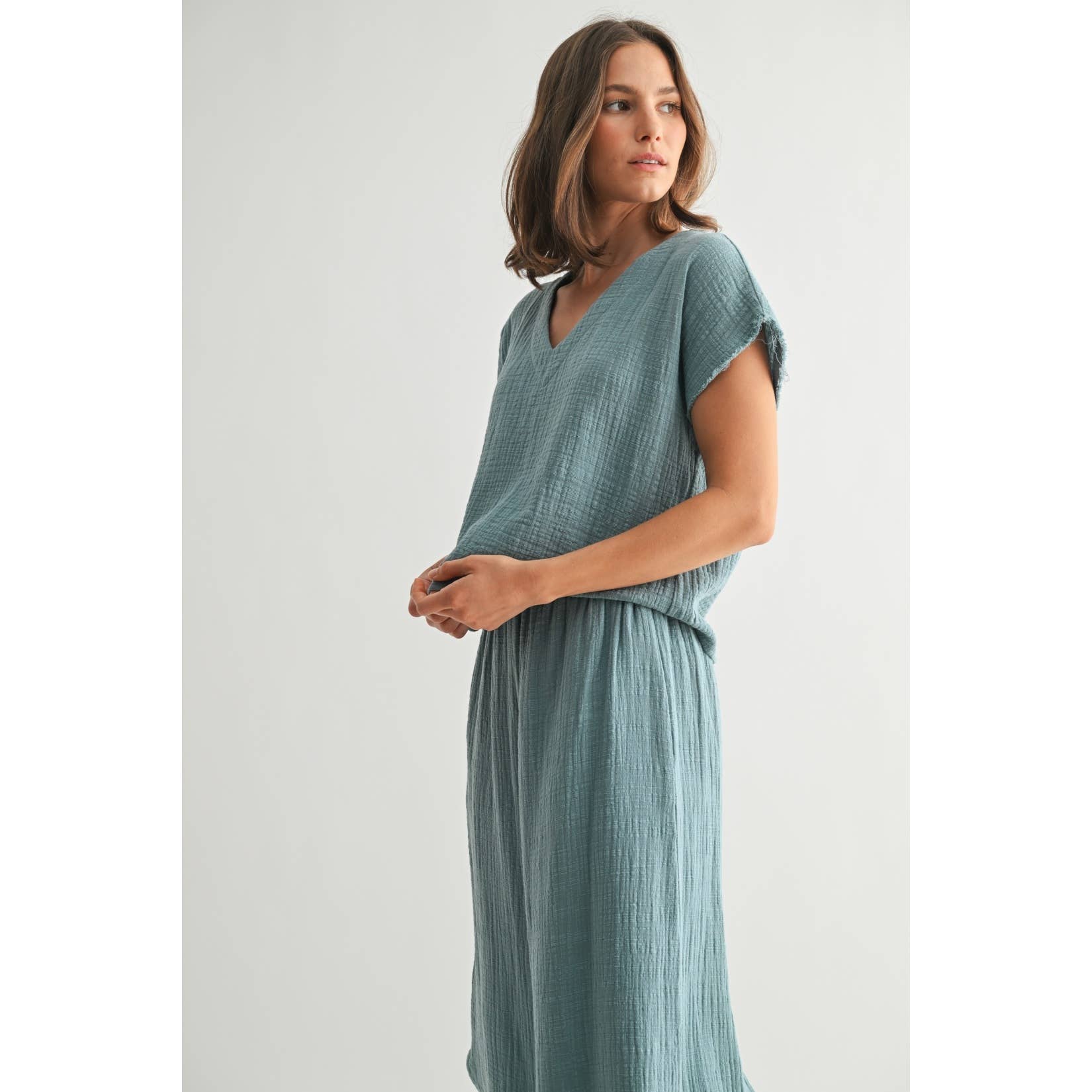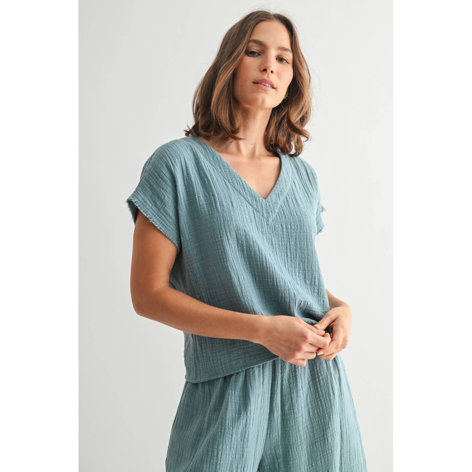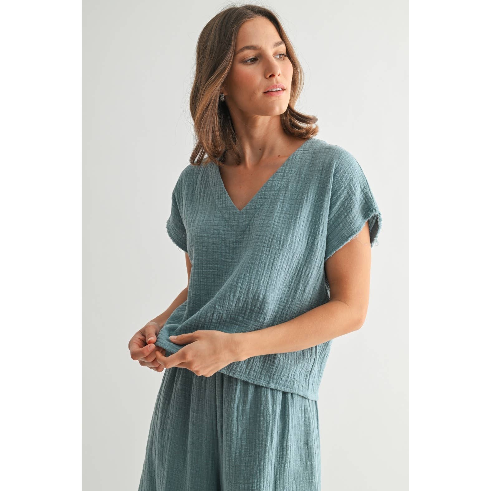 Add a touch of effortless charm to your wardrobe with the Gauze Frayed Edge Top. Its soft, breathable fabric and casually frayed edges create a relaxed, playful vibe perfect for sunny days and laid-back outings. Embrace comfort and style in one easy piece that’s as fun to wear as it is to show off.