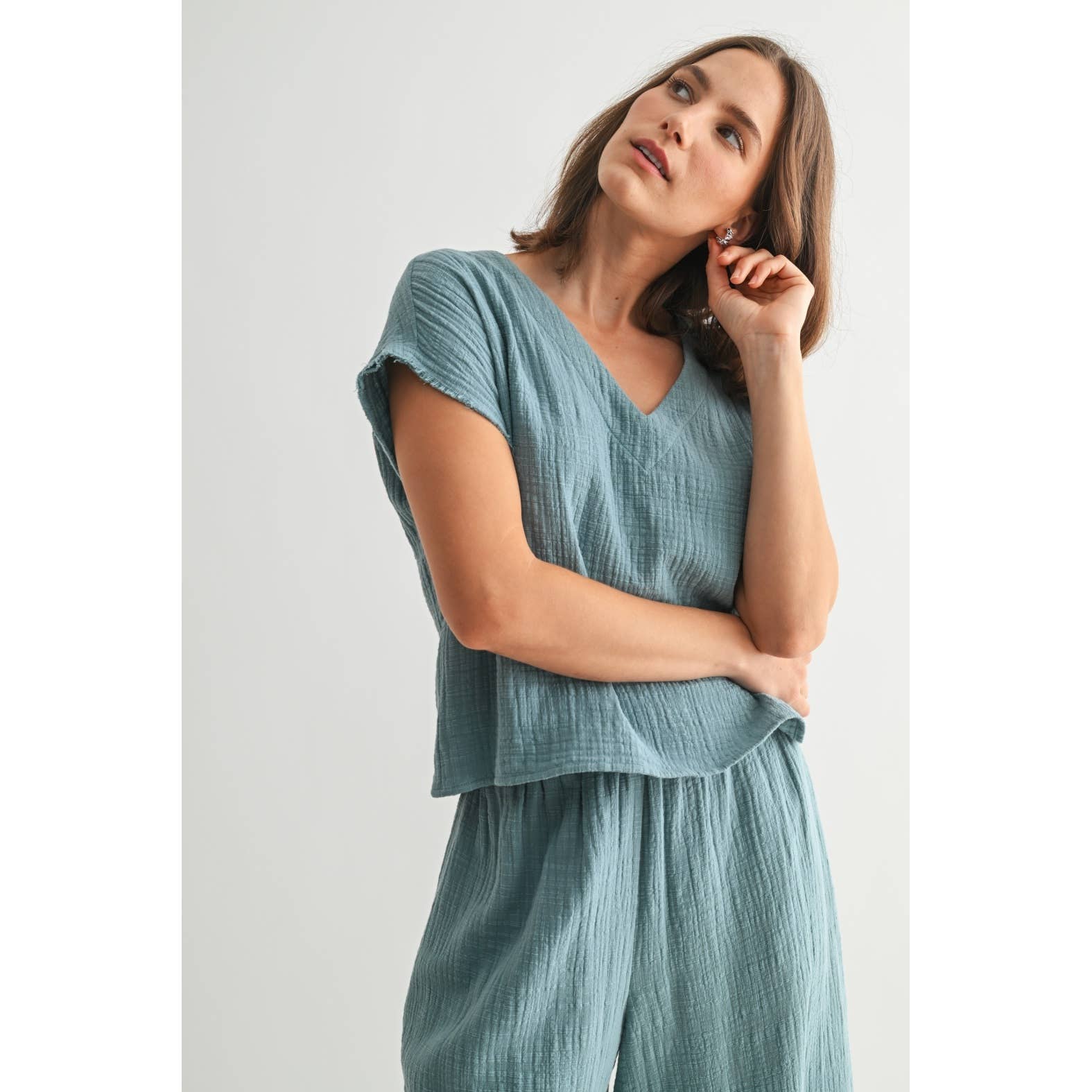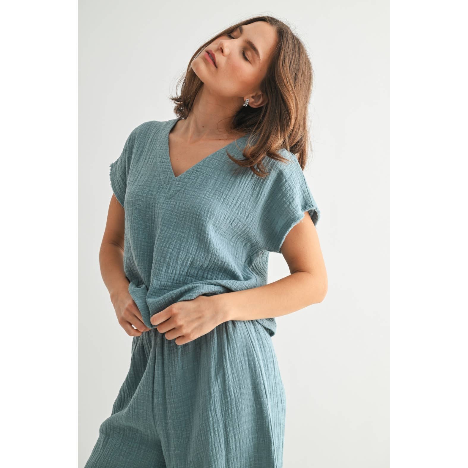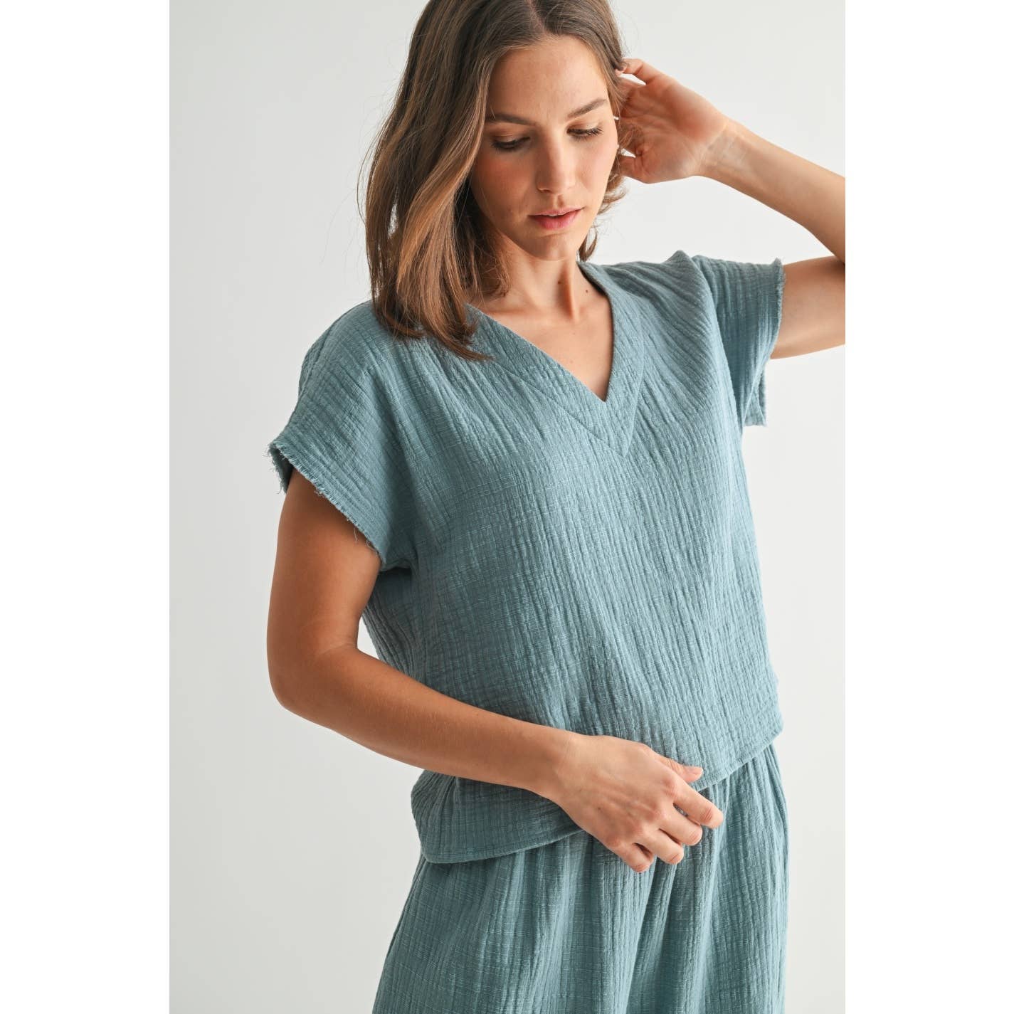 Add a touch of effortless charm to your wardrobe with the Gauze Frayed Edge Top. Its soft, breathable fabric and casually frayed edges create a relaxed, playful vibe perfect for sunny days and laid-back outings. Embrace comfort and style in one easy piece that’s as fun to wear as it is to show off.