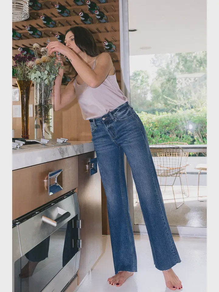 The Lovervet High Rise Wide Leg pants combine a clean, tailored cut with a raw hem detail for a sophisticated yet contemporary look. Designed to sit high on the waist, they create an elegant silhouette while the wide leg ensures comfortable, graceful movement. Ideal for elevating both professional and casual ensembles with a modern twist.