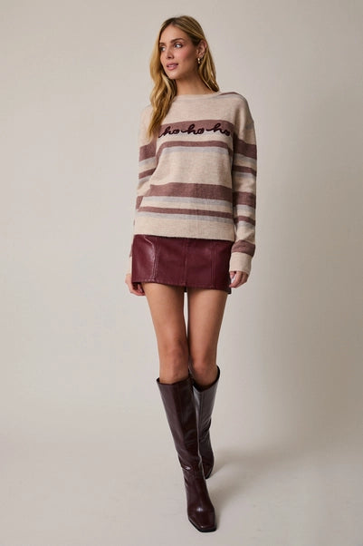 Make this holiday season unforgettable with the "HoHoHo" crew neck striped sweater—the perfect blend of festive charm and timeless style. Its classic stripes capture the spirit of the season while remaining versatile enough to wear year-round, giving you exceptional value from a single piece. The comfortable crew neckline and quality construction ensure you'll reach for it again and again, whether you're hosting gatherings, attending celebrations, or enjoying quiet winter moments. Don't settle for ordinary holiday wear—invest in a sweater that delivers both style and substance. Make it yours today.