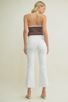 Make a bold statement with the JBD White Cropped Kick Flare. Featuring a striking silhouette that flares at the hem and a crisp white hue, these pants command attention while offering a daring edge. Perfect for those who want to stand out with confidence and style.