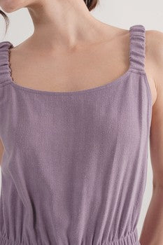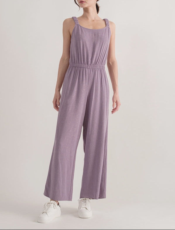 "Spring into style with this darling lavender jumpsuit. Perfect for the season, its comfy lining and playful color will have you looking and feeling your best. Keep it casual or dress it up, this jumpsuit is a must-have addition to your wardrobe.