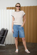 Light Khaki - Textured Knit Contrast Trim Short Sleeve