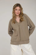 Discover refined casualness in this light mocha knit top, where a practical hood meets an elegant V neckline adorned with artfully raw edges. The deliberately unfinished detailing introduces an avant-garde sensibility to everyday wear, elevating the piece beyond standard knitwear. Designed for those who appreciate nuanced craftsmanship, it transitions effortlessly from relaxed moments to polished occasions. The warm, neutral tone provides a sophisticated foundation for intentional layering or standalone styling, making it an essential for curated wardrobes that value both substance and aesthetic refinement.