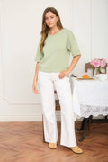 Light Olive Raw Edge Boxy Knit Top