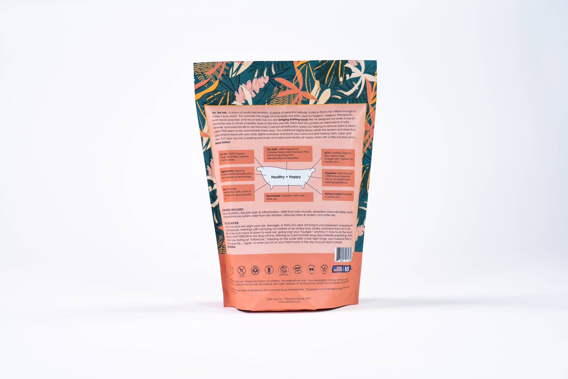 The original Salty Tub Co. detox bath. Where it all started. The Mama Detox. Many of us know how stressful and chaotic mom life can be. Let the Mama Detox bath soak infuse a healthy dose of Zen into your life. Contains Rose, Bergamot, and Lavender therapeutic grade essential oils to leave your body, spirit, and mind feeling calm, clear, and reset. With the ideal blend of pink Himalayan salt, magnesium flakes, and minerals to aid in the body’s natural detoxification system. Remove toxins and heavy metals and turn your tub into a soaking sanctuary. Add some healthy and happy vibes along with some well deserved me time with a Mama Detox!