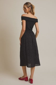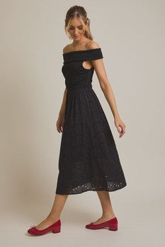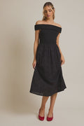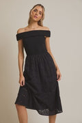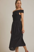 This Off Shoulder Lace Midi Dress embodies refined elegance with its thoughtfully balanced proportions. The graceful off-shoulder neckline frames the décolletage with understated allure, while the intricate lace detailing introduces a textural complexity that speaks to discerning taste. Crafted to midi length perfection, the silhouette offers a sophisticated interplay between structure and movement. An exemplary choice for the woman who appreciates nuanced design and the subtle art of making a lasting impression without unnecessary embellishment.