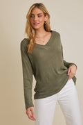 This Olive V Neck Long Sleeve making it an ideal choice for both professional and casual ensembles. Designed to create a polished, versatile silhouette, this top enhances your wardrobe with effortless style and grace.