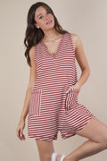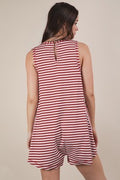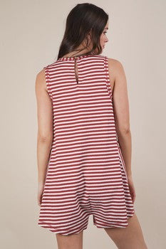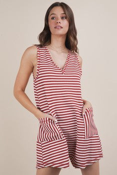 Stay cool in style with our Rust Striped Knit Romper. Made with comfortable and breathable fabric, this romper will keep you feeling cool and looking chic. Perfect for any summer day!