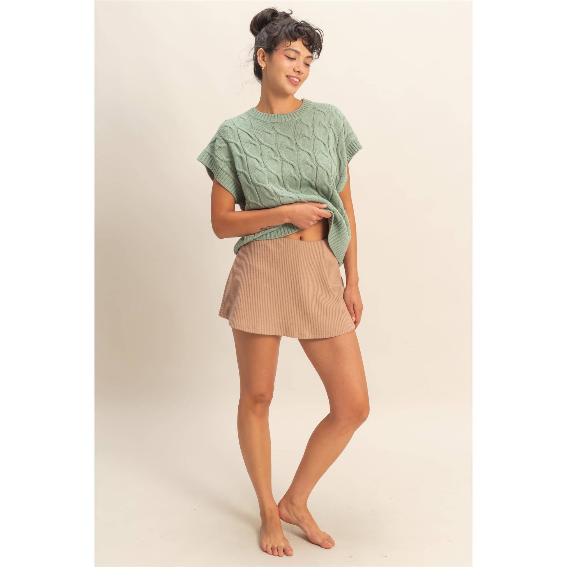 This sage green oversized cable knit sweater vest offers a refined blend of comfort and style. Its classic cable knit detailing enriches the textured look, while the loose fit ensures effortless layering. Ideal for chic, transitional dressing, it adds a subtle yet sophisticated statement to any ensemble.