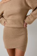 Step into cozy charm with this tan boat neck sweater dress. Its soft knit fabric and flattering boat neckline deliver warmth and style, perfect for lounging or a casual day out. The relaxed fit moves with you, making comfort effortlessly chic. Dress it up or down for a playful twist on your everyday wardrobe.