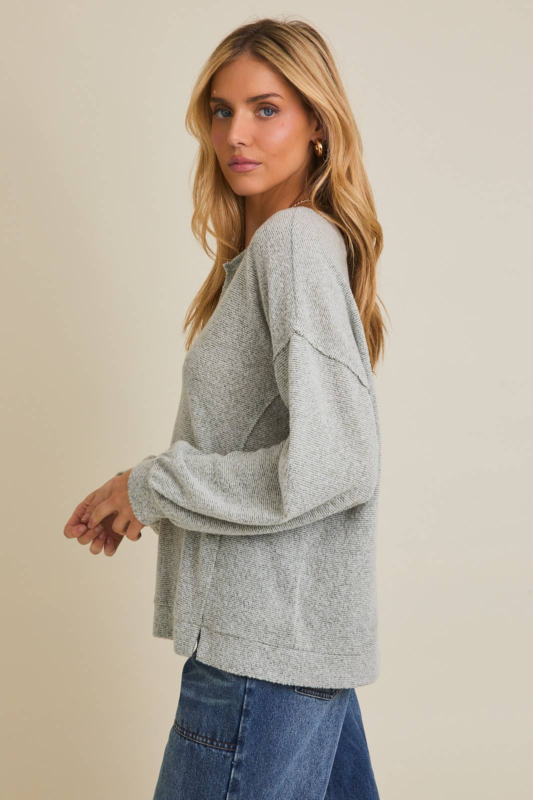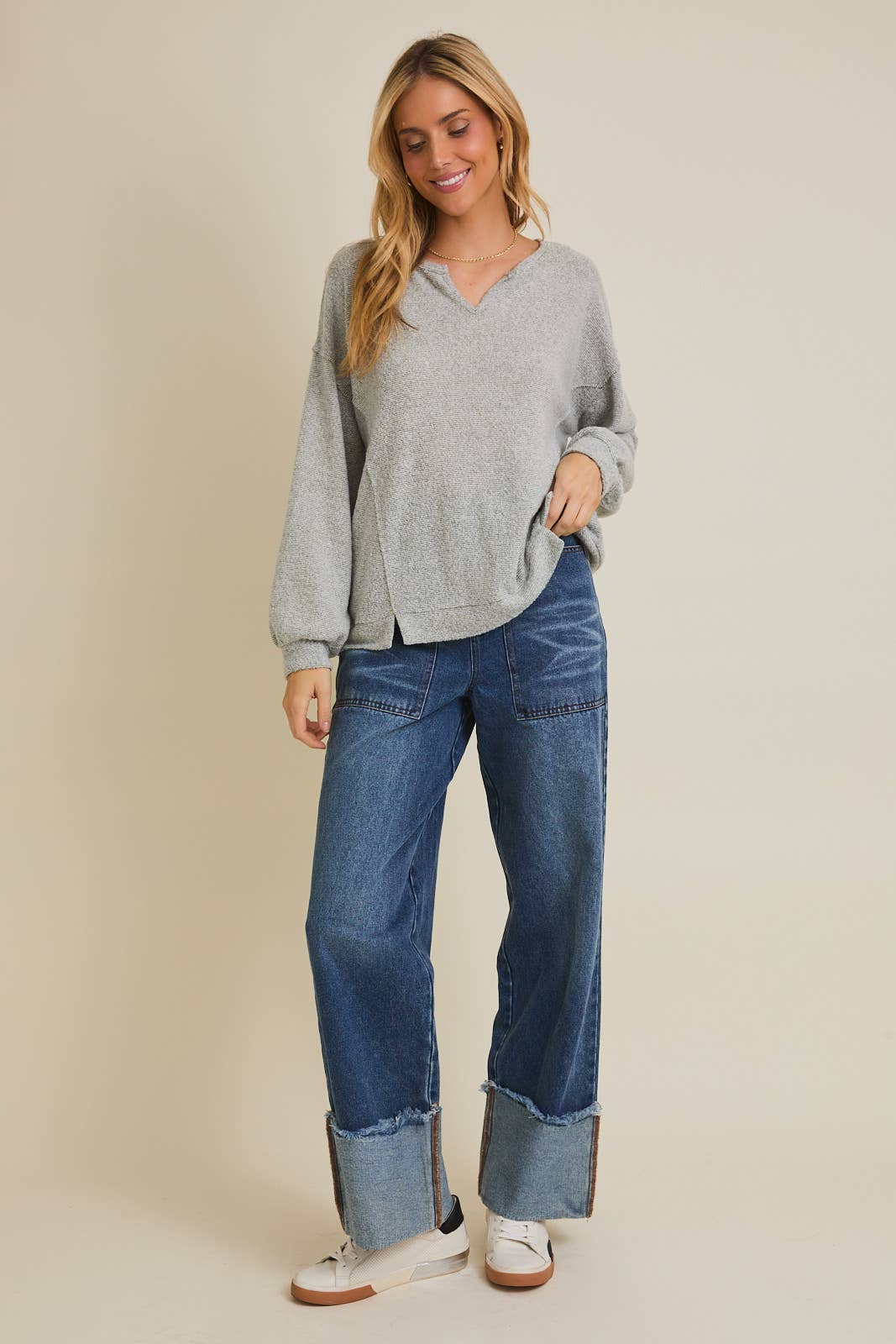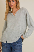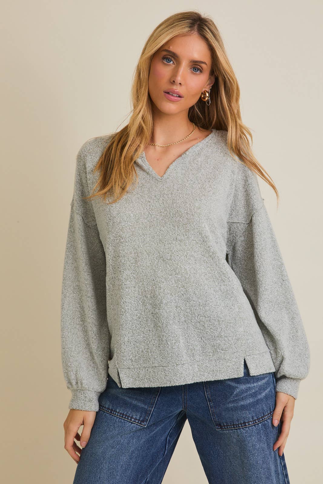 The V-Slit Reverse Stitch Top combines timeless elegance with modern craftsmanship. Its long sleeves and subtle V-shaped slit create a graceful silhouette, while the unique reverse stitching adds refined detail. Designed for both comfort and style, this top seamlessly enhances any sophisticated ensemble.